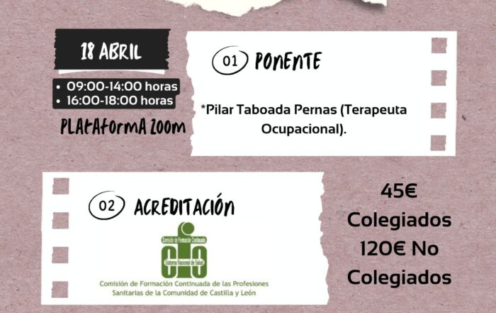 Curso "Retos de participación y aprendizaje en la infancia. Un enfoque desde la teoría de integración sensorial de Ayres". 18 de Abril 2026. Horario 09:00-14:00 / 16:00- 18:00 horas. Plataforma Zoom. 45€ colegiados / 120€